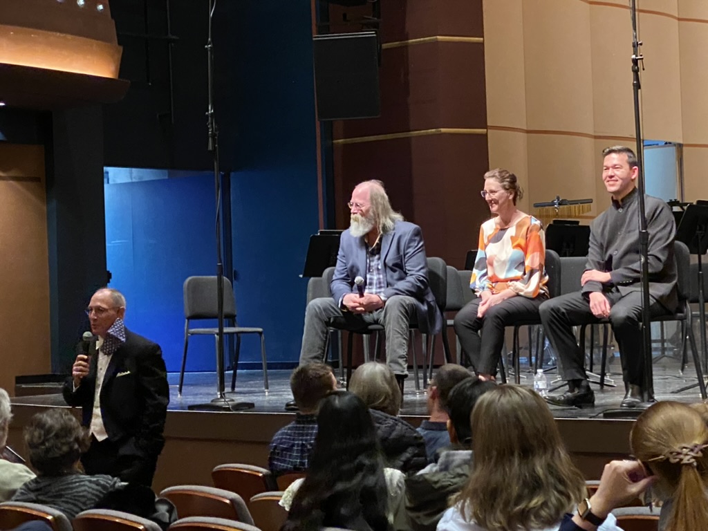 Neal Gittleman, Michael Schelle, Sheridan K. Currie, and Jonathan Lee during the post-concert discussion