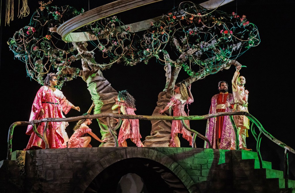 Armida (Lauryn Davis), nymphs (dancers courtesy of Attack Theatre), Idreno (Matthew Soibelman), Rinaldo (Fran Daniel Laucerica)