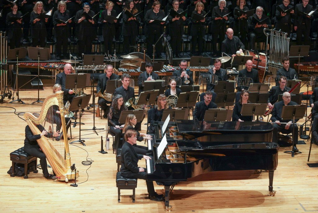 The first half was comprised of two shorter works that featured the May Festival Chorus, beginning with Vaughan Williams’ Serenade to Music. Luminous sounds blanketed the hall with the beauty of the harp and strings, and the tender voices of the chorus were a meditation on music itself. Serene and with arching lyricism, it made for the loveliest of openers.