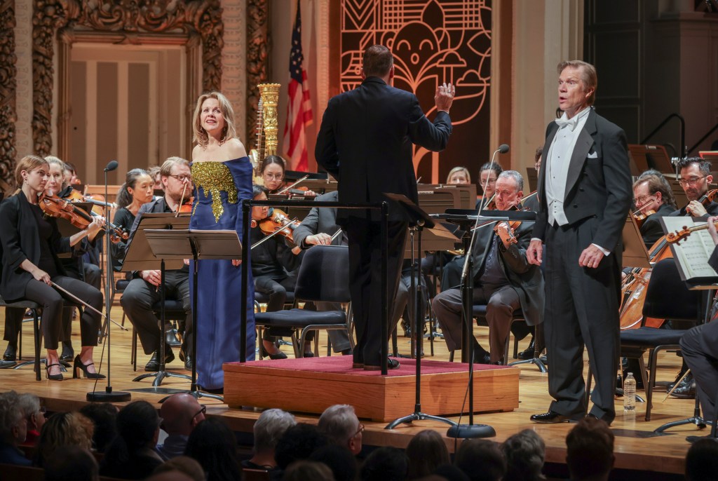 O’Keefe was quoted in saying that her first memory “is of the brightness of light, light all around,” hence the work’s title and the text with which it began, tenderly intoned by Fleming. The beginning of their correspondence was of playful, innocent humor, but the tone shifted in “A Soul Like Yours,” wherein gentle touches in the piano and violin gave to way to some deeply impassioned singing from Gilfry. Orchestral interludes served as key inflection points, underscoring the importance of the orchestra to the piece despite the top-billing of the two operatic legends — and I wonder if there’s the potential to extract a standalone orchestral suite.
