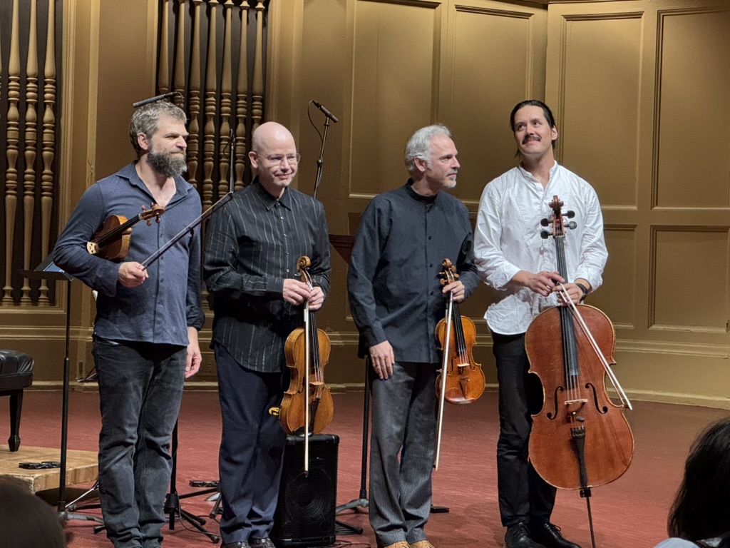 The third and final of Beethoven’s so-called Razumovsky quartets closed the program, neatly bookending the contemporary works with masters of the form. A prolonged and rather static introductory passage was quite striking before a gently cascading main theme took shape, resonating with the brightness of C major. The first two of the Razumovsky quartets explicitly contain a Russian theme — although no such designation is made in the third, the captivating theme of the slow movement is likely of Russian origin (perhaps a connection to the Byron work heard earlier). Winding and wistful, the melodic line was underpinned by pizzicato cello. Like the selected Haydn quartet, Beethoven too closed with a fugue — indeed, the most appropriate way to conclude this program. Blazing by in a whirlwind, it made for one of Beethoven’s most thrilling finales.